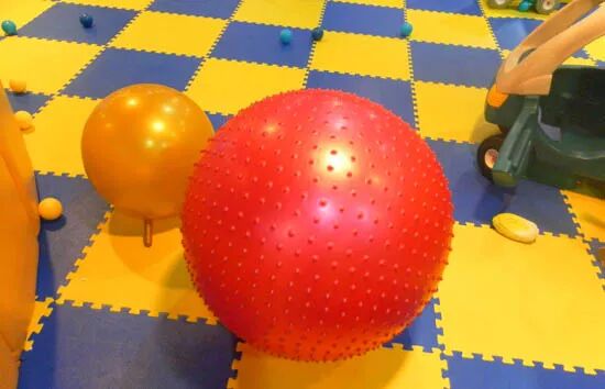 做法:讓孩子仰臥或俯臥在墊子上,用大龍球在其身上滾過去。若孩子喜歡這種壓力可嘗試加重一點壓力。